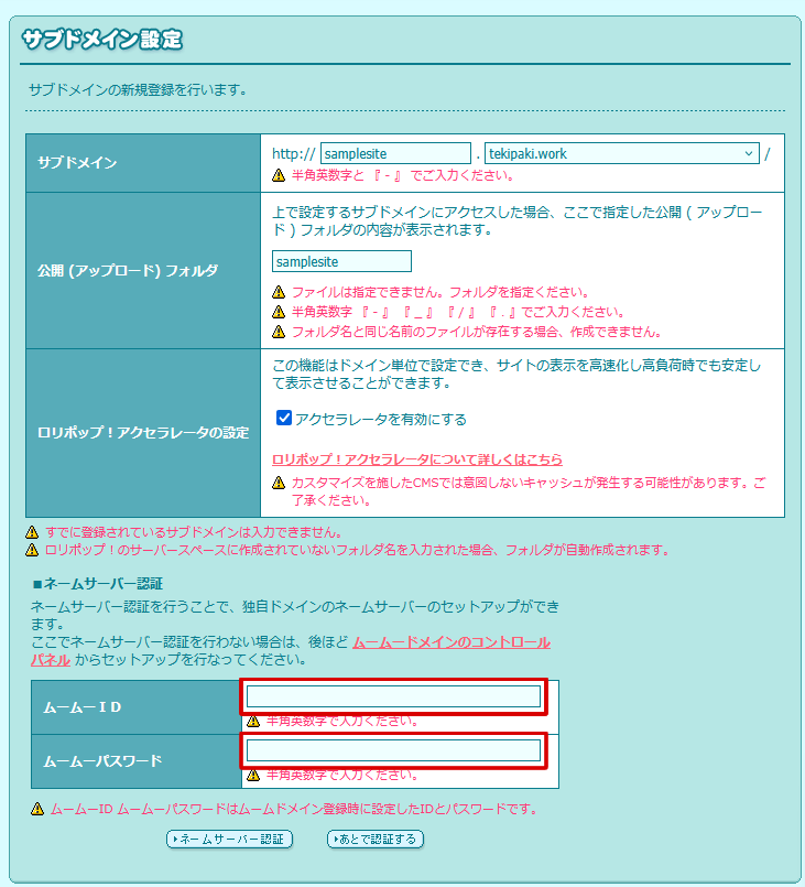 ムームーで、ドメインを取得した場合は、ここに情報を入れます。