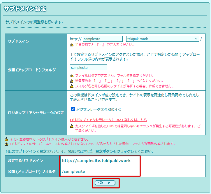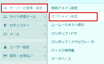 『サーバーの管理・設定』→『サブドメイン設定』